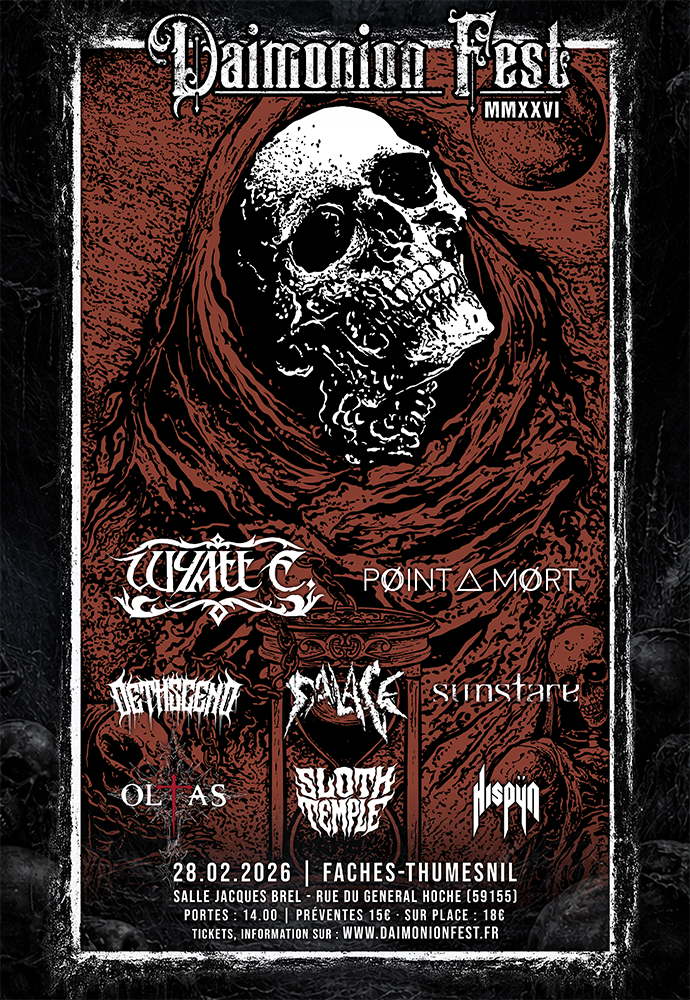 Le DAIMONION FEST lance sa première édition le 28 février 2026 à Faches-Thumesnil (Lille – 59) et s’installe comme un nouveau rendez-vous incontournable de la scène Sludge/Doom/Post-Metal.
